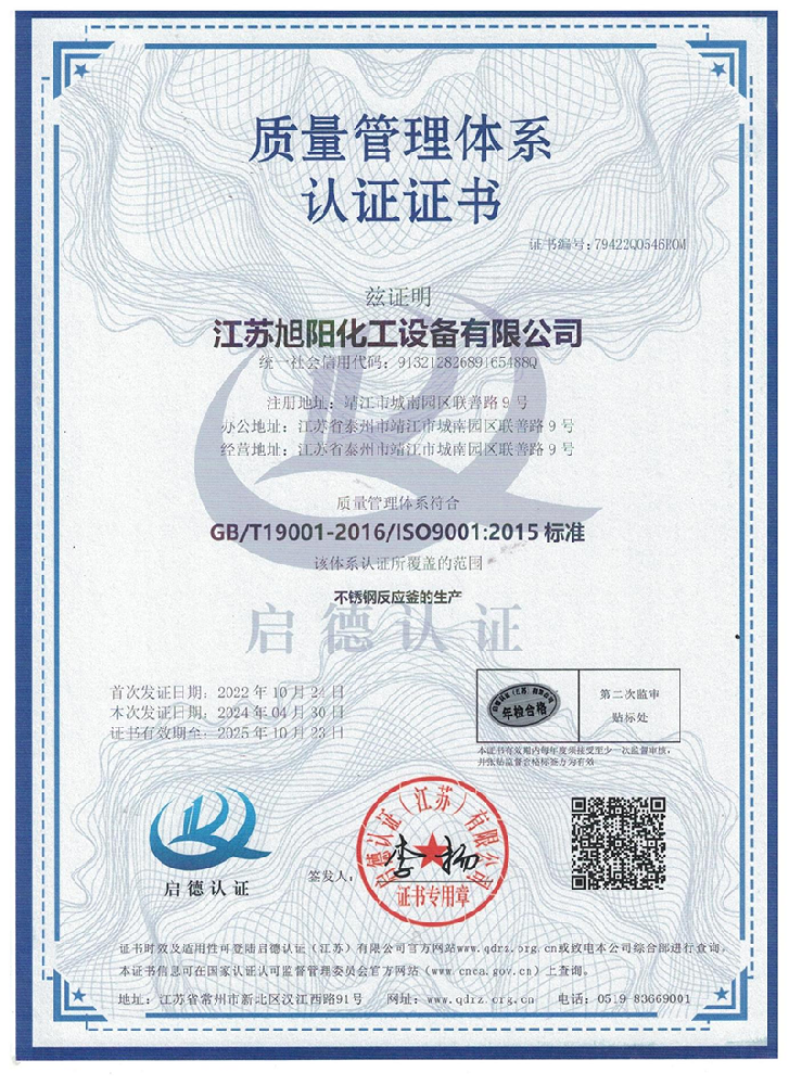 Jiangsu Xuyang Chemical Equipment Co., Ltd. is a high-tech enterprise integrating research and development, production and import and export trade, specializing in the design and manufacture of various chemical, environmental protection, pharmaceutical, fermentation, food, new materials, lithium and other projects and the manufacture of pressure vessels.